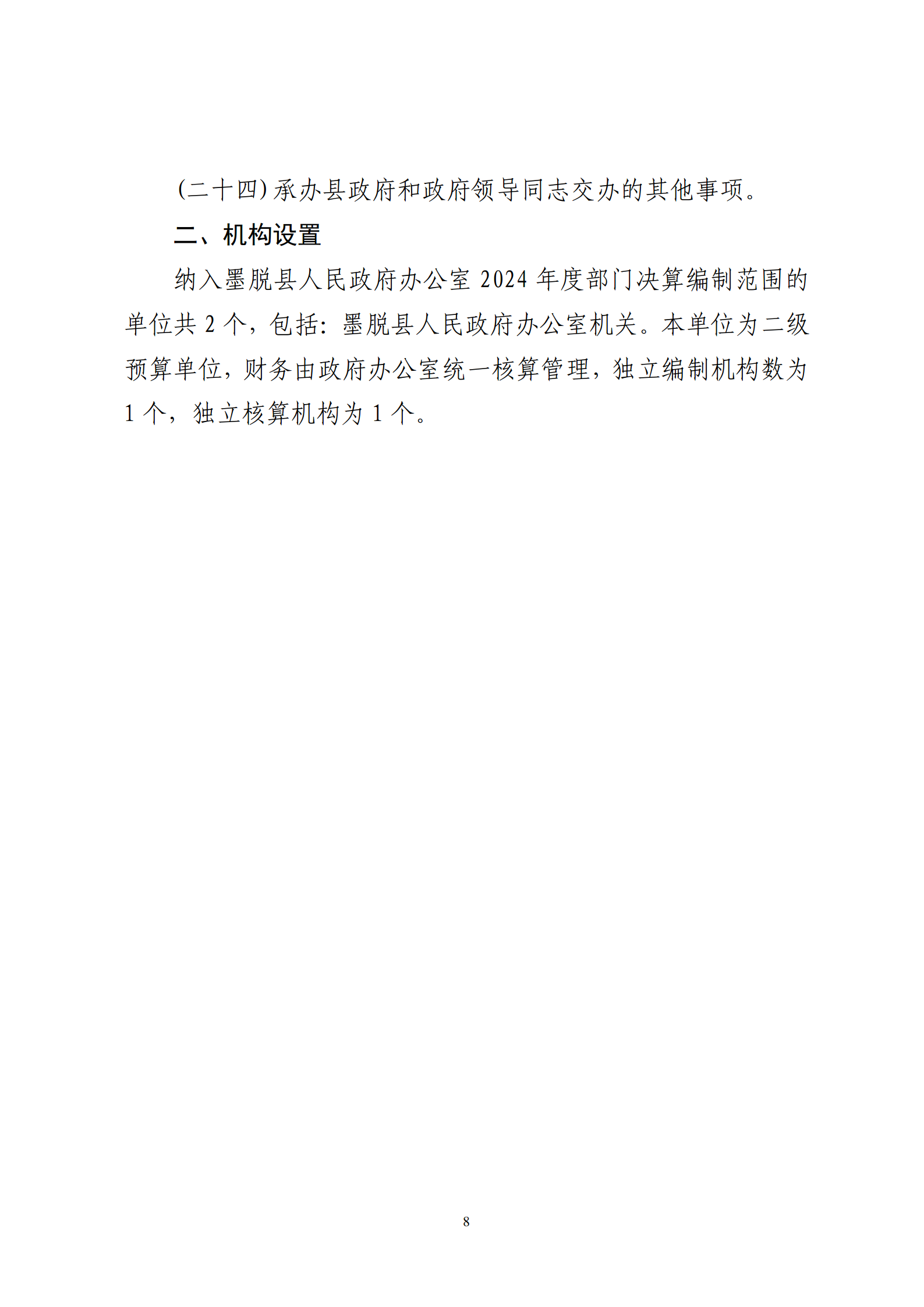 墨脱县人民政府办公室机关2024年度部门决算公开报告