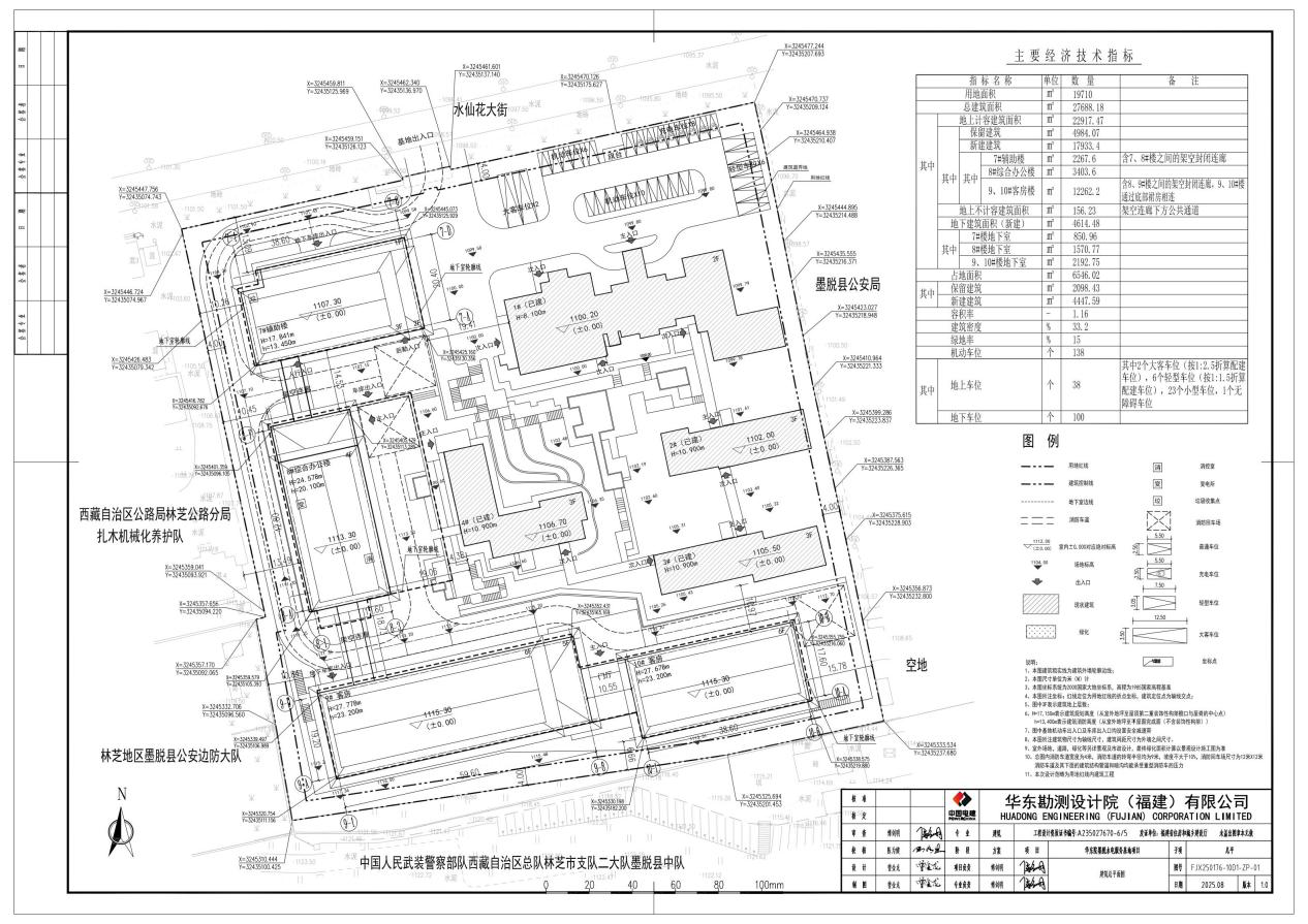 华东院墨脱水电服务基地项目位于墨脱县水仙花路南侧,总用地面积19710平方米,拟建建筑面积27688.18平方米(其中地上计容建筑面积22917.47平方米,地上不计容面积156.23平方米,地下建筑面积4614.48平方米),建筑占地面积6546.02平方米,建筑总高23.20米,停车位138个,其中地上室外车位38个,地下车位100个。(详见建筑总平面图、建筑立面效果图)现根据《中华人民共和国城乡规划法》第四十条规定,现将《华东院墨脱水电服务基地项目》方案设计进行公示,征求公众和利害关系人意见。